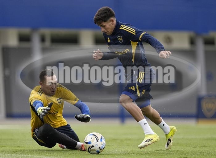 Agustin Marchesin y Tomas Aranda - Entrenamiento de Boca Juniors - Centro de Entrenamiento de Boca Juniors en Ezeiza - 20 de marzo de 2026 - Foto: Javier Garcia Martino - Prensa CABJ -