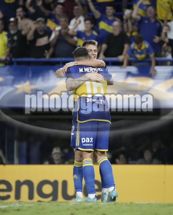 Festejo de Kevin Zenon y Miguel Merentiel - Boca Juniors vs San Lorenzo - Copa de la Liga Argentina 2024 - 30 de marzo de 2024 - Fecha 12 - Estadio: Alberto J. Armando - La Bombonera - Foto: Javier Garcia Martino - Prensa CABJ -