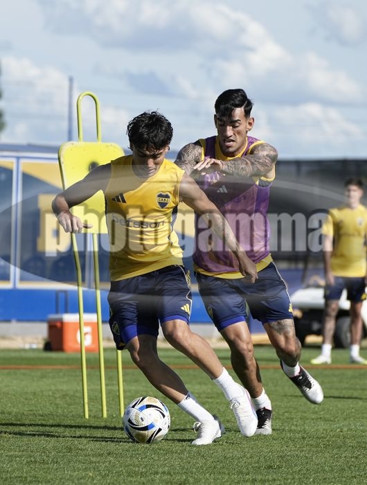 Exequiel Zeballos y Lautaro Di Lollo - Entrenamiento de Boca Juniors - 2 de diciembre de 2025 - Centro de Entrenamiento de Boca Juniors en Ezeiza - Foto: Javier Garcia Martino - Prensa CABJ - JAVIER GARCIA MARTINO garcia martino javier
