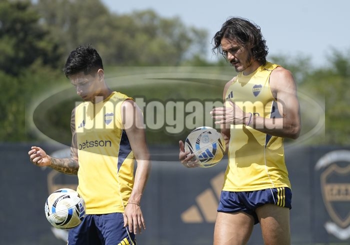Brian Aguirre y Edinson Cavani - Entrenamiento de Boca Juniors - Centro de Entrenamiento de Boca Juniors en Ezeiza - Pre temporada 2026 - Dia 11 - 12 de enero de 2026 - Foto: Javier Garcia Martino - Prensa CABJ - JAVIER GARCIA MARTINO garcia martino javier