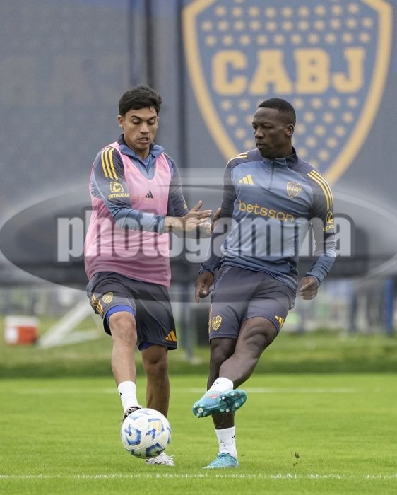 Exequiel Zeballos y Luis Advincula - Entrenamiento de Boca Juniors - Centro de Entrenamiento de Boca Juniors en Ezeiza - 7 de mayo de 2025 - Foto: Javier Garcia Martino - Prensa CABJ