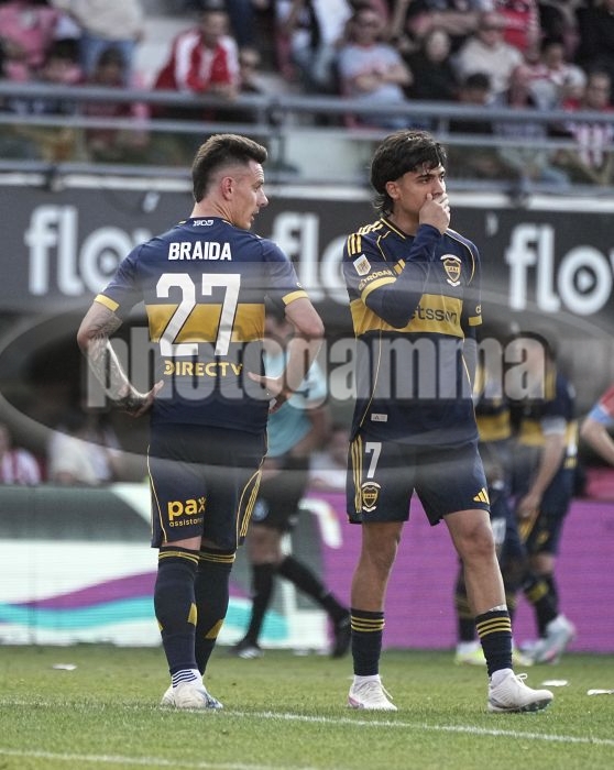 Malcom Braida y Exequiel Zeballos - Estudiantes LP vs Boca Juniors - Torneo Clausura 2025 - Segunda Fase - Fecha 14 de 16 - 2 de noviembre de 2025 - Estadio UNO Jorge Luis Hirschi - La Plata - Foto: Javier GarcĂ­a Martino - Prensa CABJ -