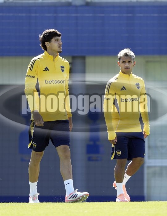 Mateo Mendía y Milton Delgado - Entrenamiento de Boca Juniors - 31 de octubre de 2025 - Centro de Entrenamiento de Boca Juniors en Ezeiza - Foto: Javier García Martino - Prensa CABJ -