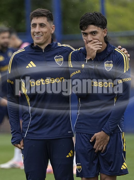 Miguel Merentiel y Exequiel Zeballos - Entrenamiento de Boca Juniors - 29 de noviembre de 2025 - Complejo Pedro Pompilio - Casa Amarilla - Foto: Javier Garcia Martino - Prensa CABJ -