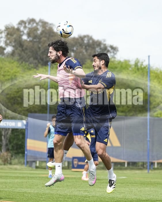 Agustin Martegani y Nicolas Figal - Entrenamiento de Boca Juniors - Centro de Entrenamiento de Boca Juniors en Ezeiza - 11 de octubre de 2025 - Foto: Javier Garcia Martino - Prensa CABJ -