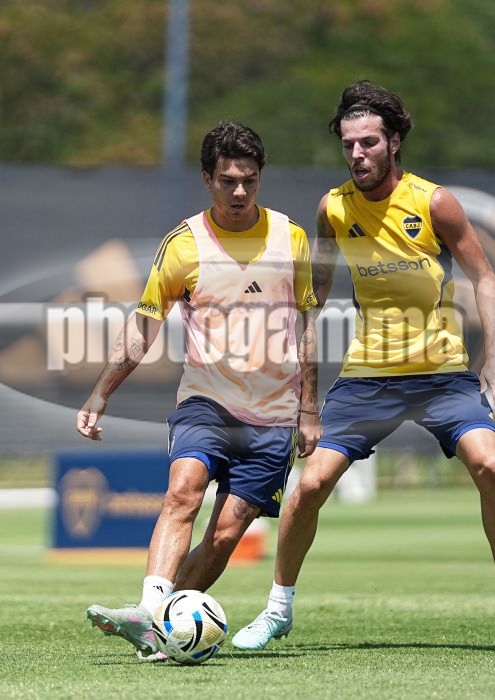 Lucas Blondel y Agustin Martegani - Entrenamiento de Boca Juniors - Centro de Entrenamiento de Boca Juniors en Ezeiza - 29 de enero de 2026 - Foto: Javier Garcia Martino - Prensa CABJ -