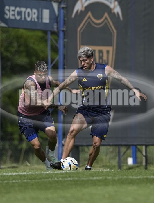 Ayrton Costa y Carlos Palacios - Entrenamiento de Boca Juniors - 19 de noviembre de 2025 - Centro de Entrenamiento de Boca Juniors en Ezeiza - Foto: Javier Garcia Martino - Prensa CABJ -