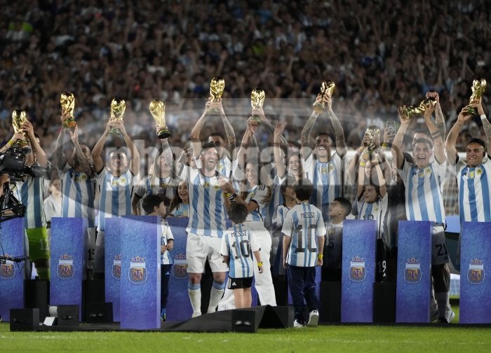 Premiacion para la Selección Argentina - Argentina vs Panama - Partido amistoso y con motivos de celebración por la obtención de la Copa Mundial FIFA Qatar 2022 - 23 de marzo de 2023 -Estadio Mas Monumental, Buenos Aires - Foto: Javier Garcia Martino - Photogamma javier garcia martino photogamma