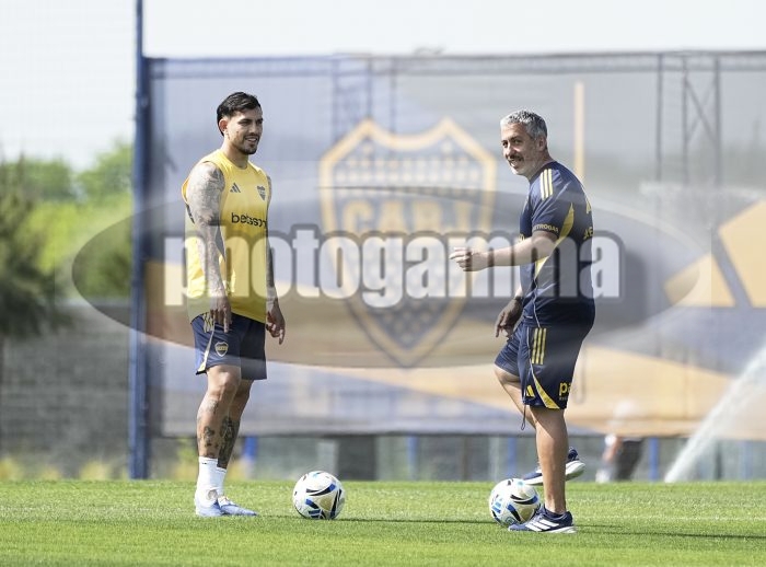 Leandro Paredes y Cristian Aquino - Entrenamiento de Boca Juniors - Centro de Entrenamiento de Boca Juniors en Ezeiza - 16 de octubre de 2025 - Foto: Javier GarcĂ­a Martino - Prensa CABJ - javier garcia martino @javierphotogamma